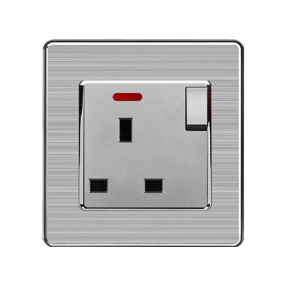 Stainless Steel Brushed UK Single Socket - LED indicator Red