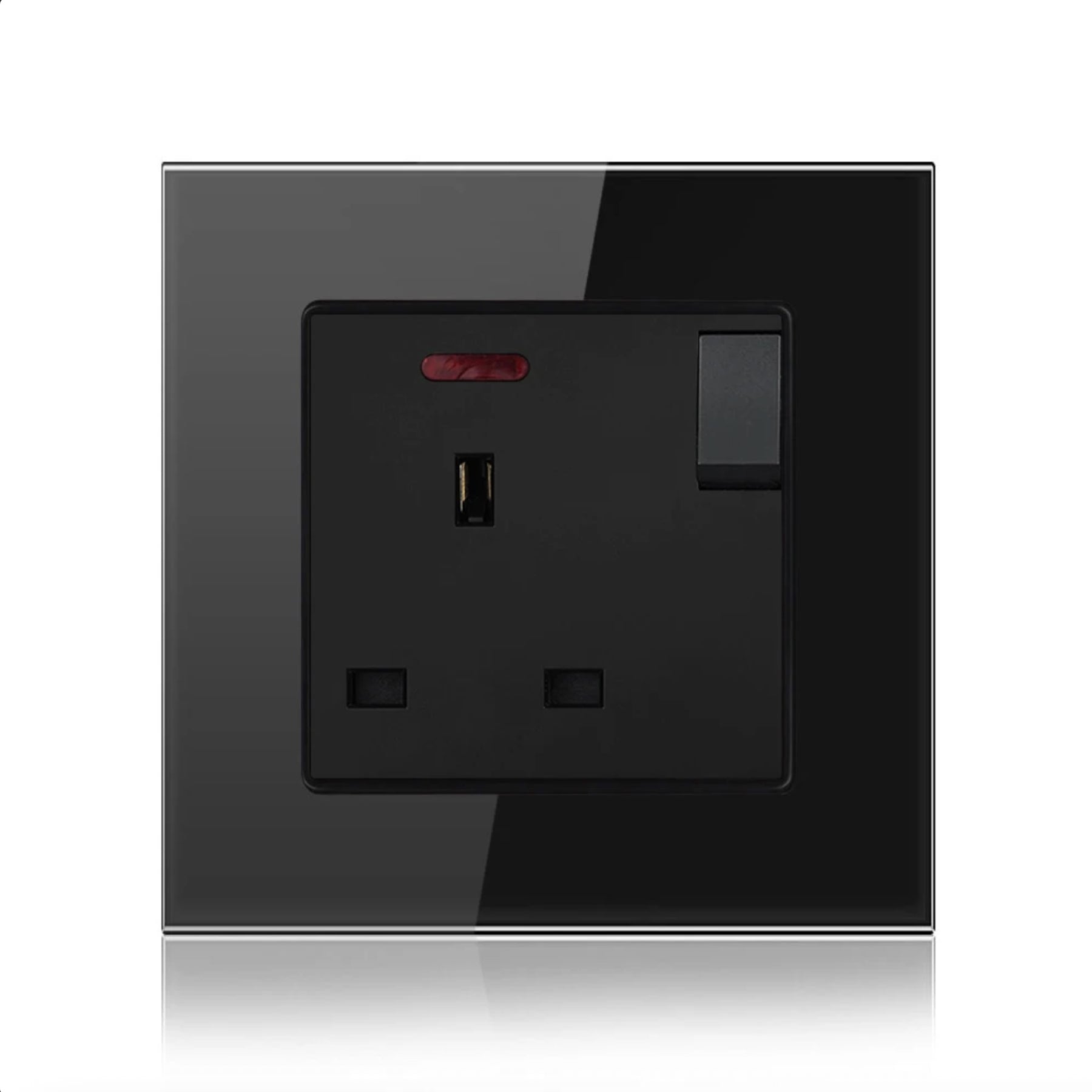 13A 1-Gang Switched Socket - Tempered Glass - Black