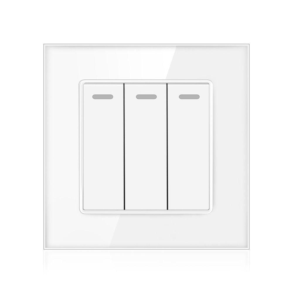 16AX 3-Gang 2-Way Light Switch Tempered Glass White. Supplied with fixing screws and covers.