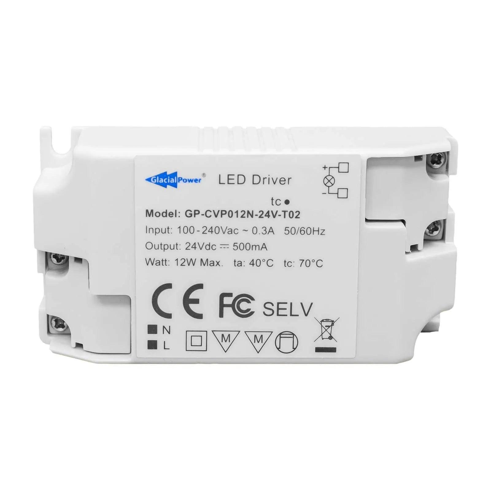 The Glacial electronic transformer is a safe and highly efficient power supply for LED Strip lighting and ultra-low voltage LED bulbs. For short length of strip lights up from a few cm to 100cm this small and compact driver will power up any 24V led circuit.
