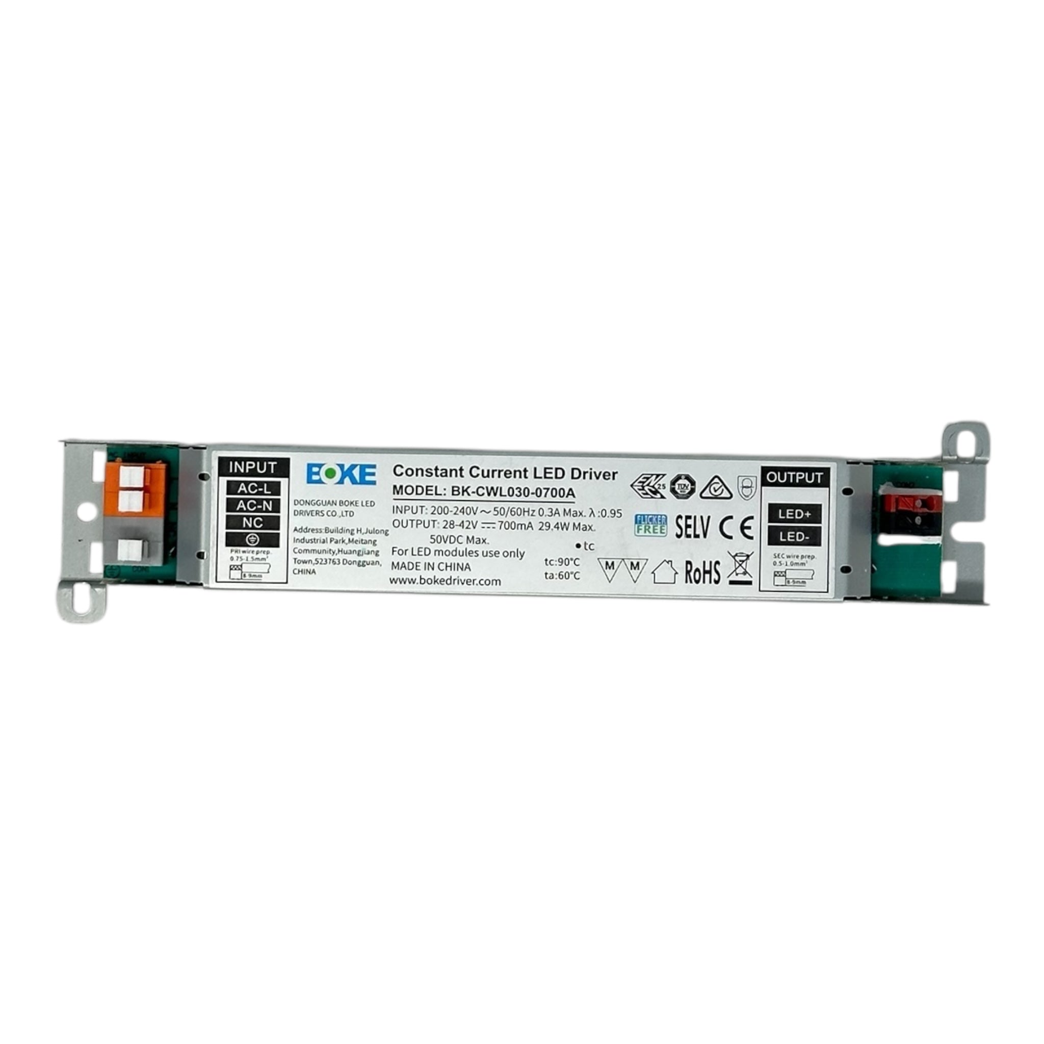 The Boke BK-CWL030-0700A LED driver is a high-performance, flicker-free solution ideal for various lighting applications, including indoor, office, and commercial spaces.