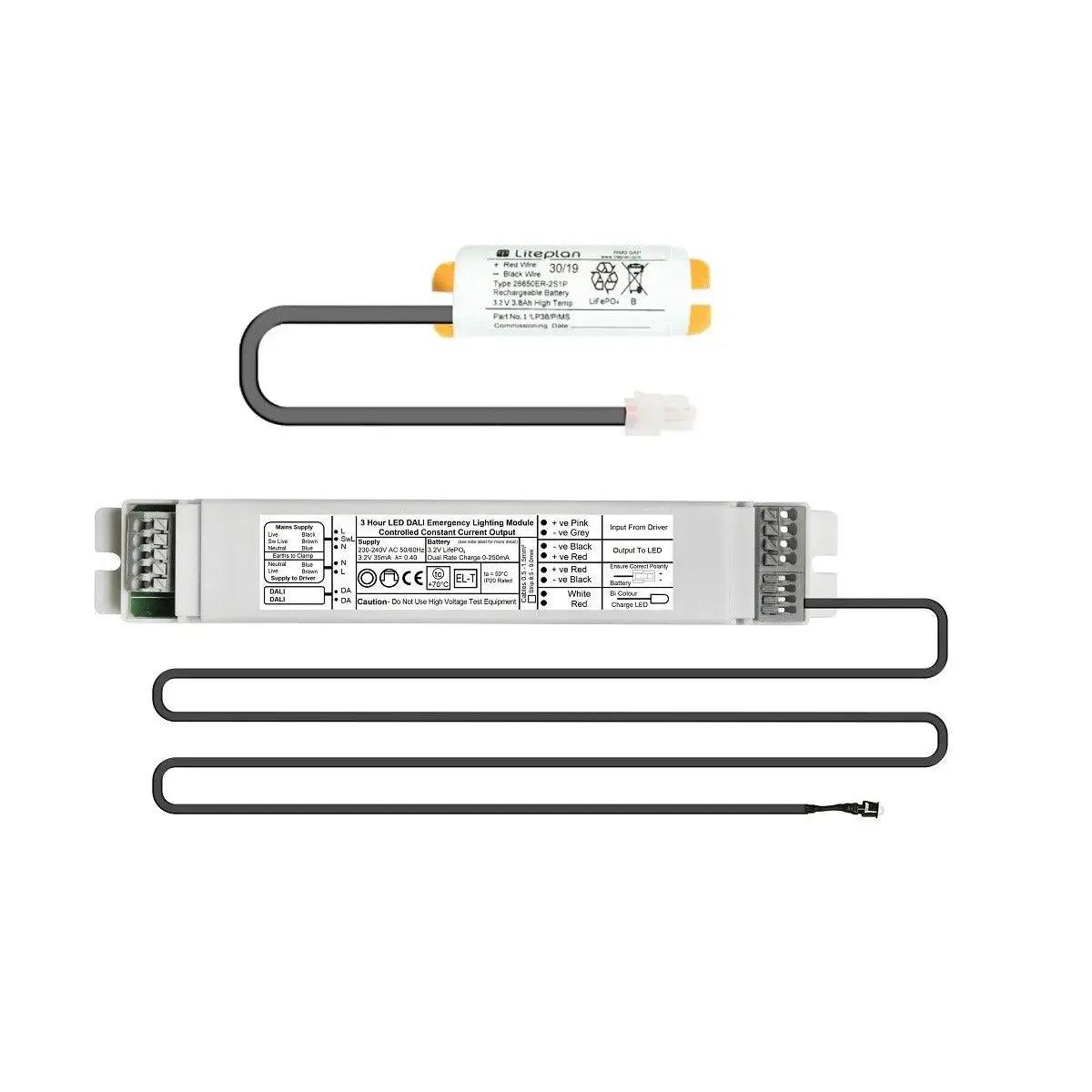 Compatible with DALI dimming system and LED Tubes, downlights, bulbs, and led panels. Lite plan DNA/1 with lithium ion battery, LED indicator and full wiring instructions.