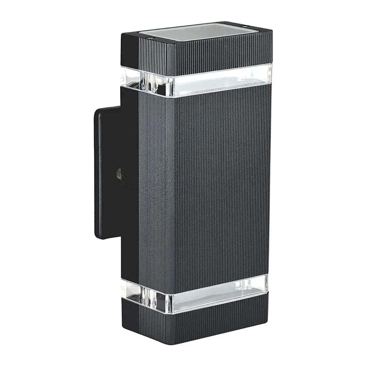 All-purpose wall lights for indoor and outdoor use, easy to mount on any wall, hallways, entrances, garage, garden, or security lights. It lits up, down and sideways. GU10 spotlights can be replaced at any time.