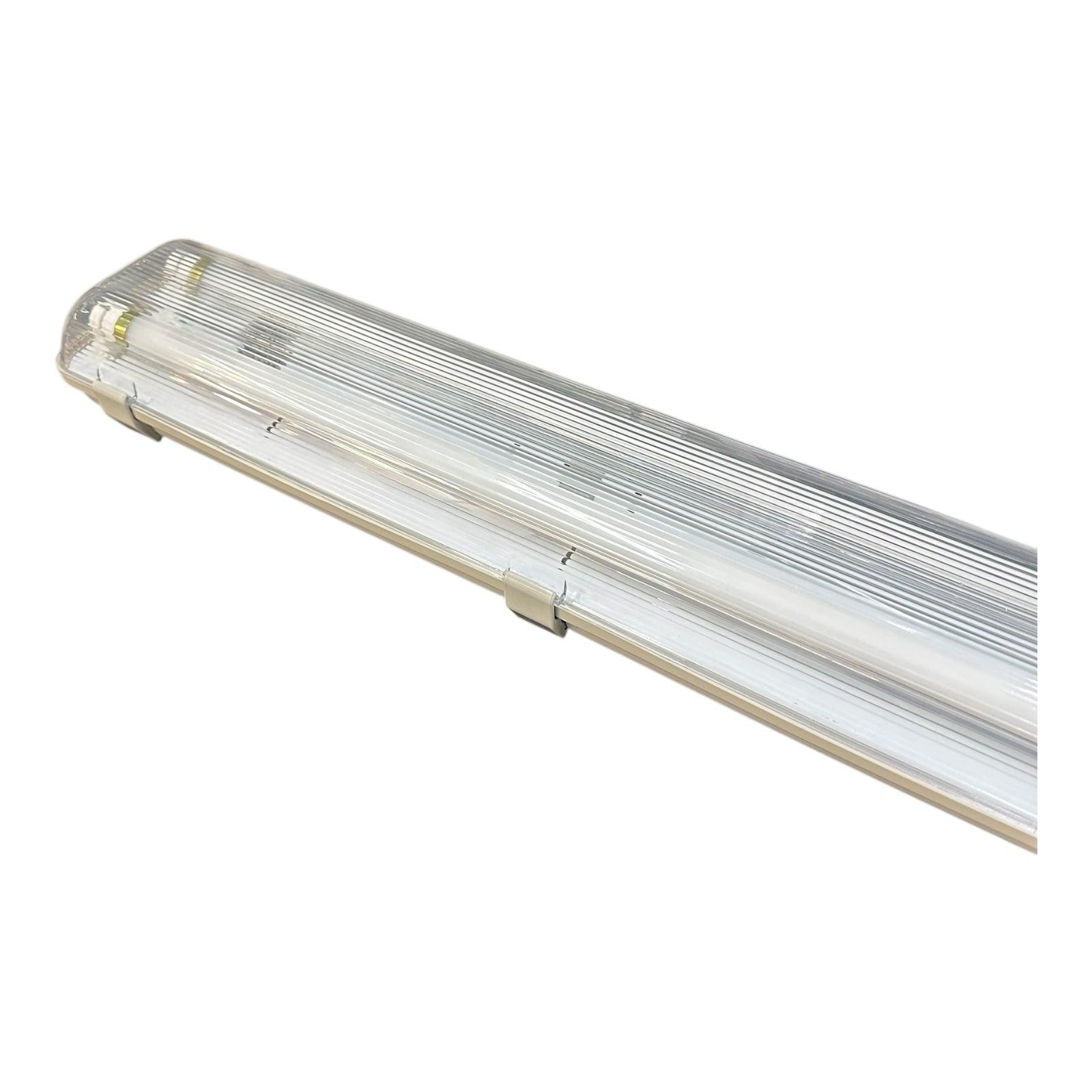 Our noncorrosive, weatherproof light fitting with Ledison T8 LED tubes is ideal for various settings, offering durability and long-lasting performance. Its IP65 rating protects it against water and dust, making it reliable for areas where exposure to these elements is likely. Including pre-fitted cool white LED tubes simplifies installation, making it an excellent choice for spaces that need bright, efficient lighting.
