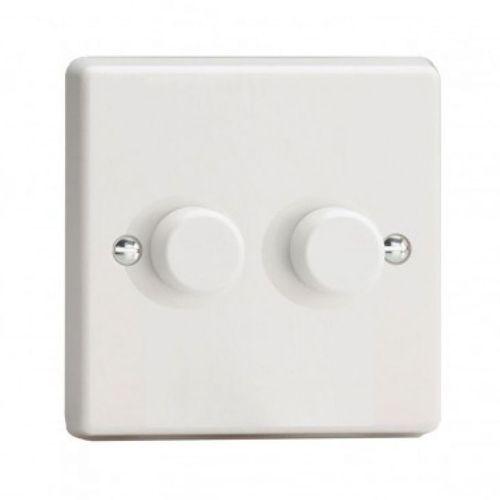 This a trialing edge (AC triac) dimmer with 1-Gang, 2-Way Push-On/Off Rotary button. The maximum load is 0-100W (10 LEDs per gang)