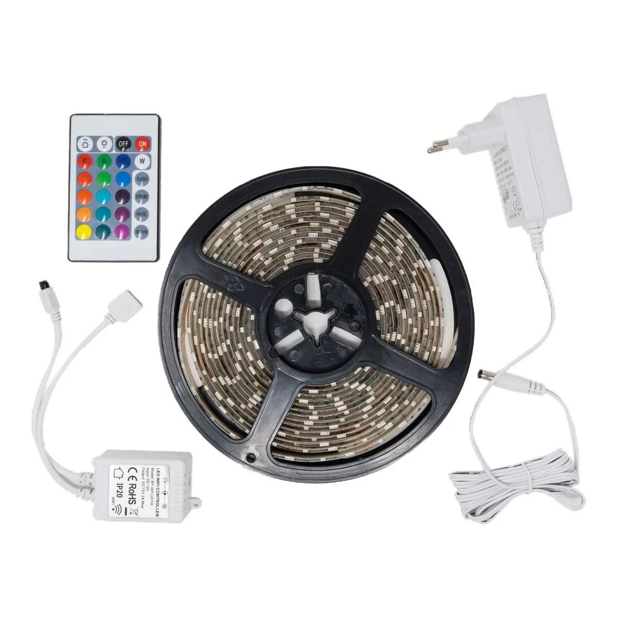 Smart WiFi 5M RGB LED Strip + White 12V 24W - Works with Alexa & Google Assistant